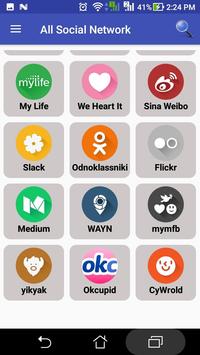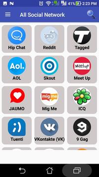 This apps contains all popular social networking sites and one can access your favorite social media such as Facebook Twitter Instagram Pinterest LinkedIn Telegram Snapchat Tumblr Baddo hitwe Skout Twoo Mico Reddit AOL ICQ Meet Me Digg Imgur Tuenti etc. and many more through this app.