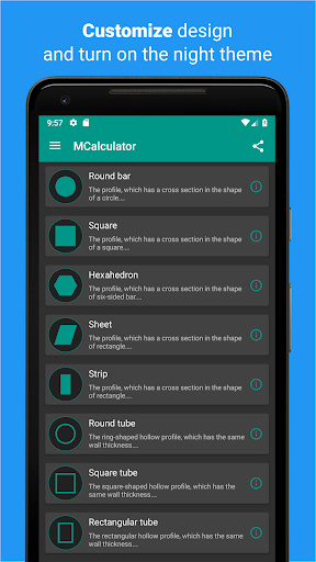 calculates different types of metal profiles: