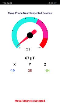 Body Scanner, and Metal Detected app, Use as Body scanner to Scan body for Detection of Metal, You can also use this app as to detect hidden camera. Metal detector Hidden camera can also be detected by this metal detector and body scanner. Metal Detection, Metal Detected. body Scanner The greater the magnetic field value, the stronger the metal will be. Detect hidden electrical wires and metal objects in walls, Metal Detected.