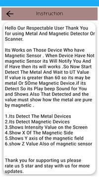 Metal detection: Metal Detection A metal detector android app download is an electronic instrument which detects the presence of metal nearby. Metal detectors are useful for finding metal inclusions hidden within objects, or metal objects buried underground. Metal Detector is best free detector app of 2019 it is so, easy to use and an extremely useful application for your android mobile. Body Scanner, and Metal Detected app, Use as Body scanner to Scan body for Detection of Metal, You can also use this app as to detect hidden camera. Metal detector Hidden camera can also be detected by this metal detector and body scanner. The greater the magnetic field value, the stronger the metal will be. The accuracy depends entirely on your smart phone magnetic sensor (magnetometer). Metal detector x, Body scanner, Metal Scanner, Scan Metals. Iron Detectors, detect Iron, Iron Detector, Iron detection, Metal detector, Metal Detection, EMF detector, EMF Finder, EMF Locator, Metal Locator, Metal Finder,