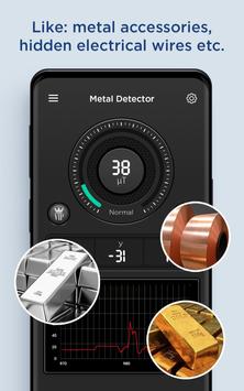 Free Metal Scanner - Metal Detector for Android measures magnetic fields with an embedded magnetic sensor. The magnetic field level (EMF) in nature is about 49μT(micro tesla) or 490mG(milli gauss); 1μT = 10mG. When any metal(steel, iron) is near, magnetic field level will increase.