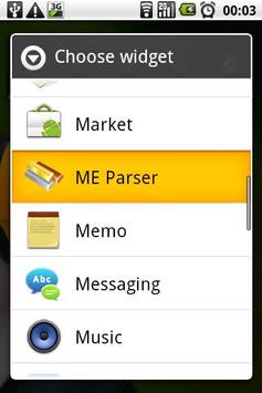 TO RUN THE APPLICATION LONG PRESS ON THE HOMESCREEN AND CHOOSE "ME Parser" WIDGET.