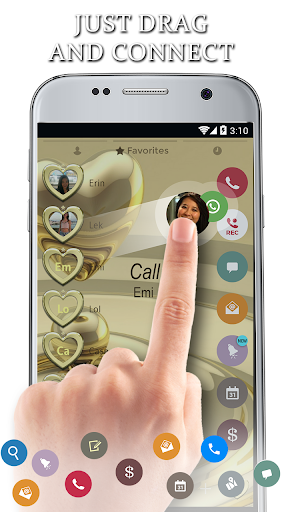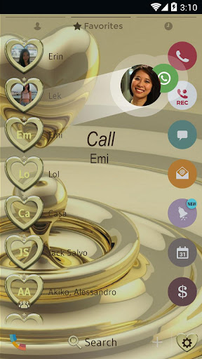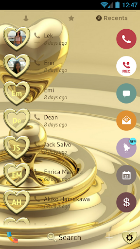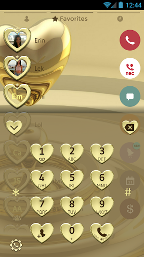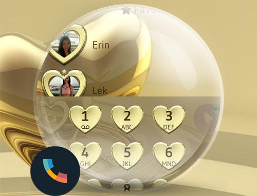 All gold everything! Who does not love a golden heart? This metallic gold theme is everything your smartphone needs to look its best. This expensive looking gold theme for your dialer and contacts is free! View your contacts and make phone calls with style and show your affection to your beloved ones with beautiful gold shaped hearts on every button and contact avatar.