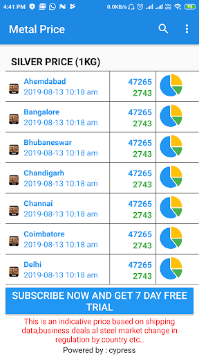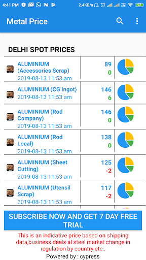 Metal Price is also providing Prices of cities like Mandi Gobindgarh, Raipur, Ghaziabad, Mujafar Nagar, Alang, Raigarh, Patna, Orrisa, Kalkatta, Mumbai. Indore, Pune, Hyderabad, Himanchal Pardesh, Jammu & Kashmir, Bhiwari, Durgapur, Nagpur etc. This SMS Service is provided to both Domestic and International clients. And each day company sends out 10 SMS for each Group to all the clients.