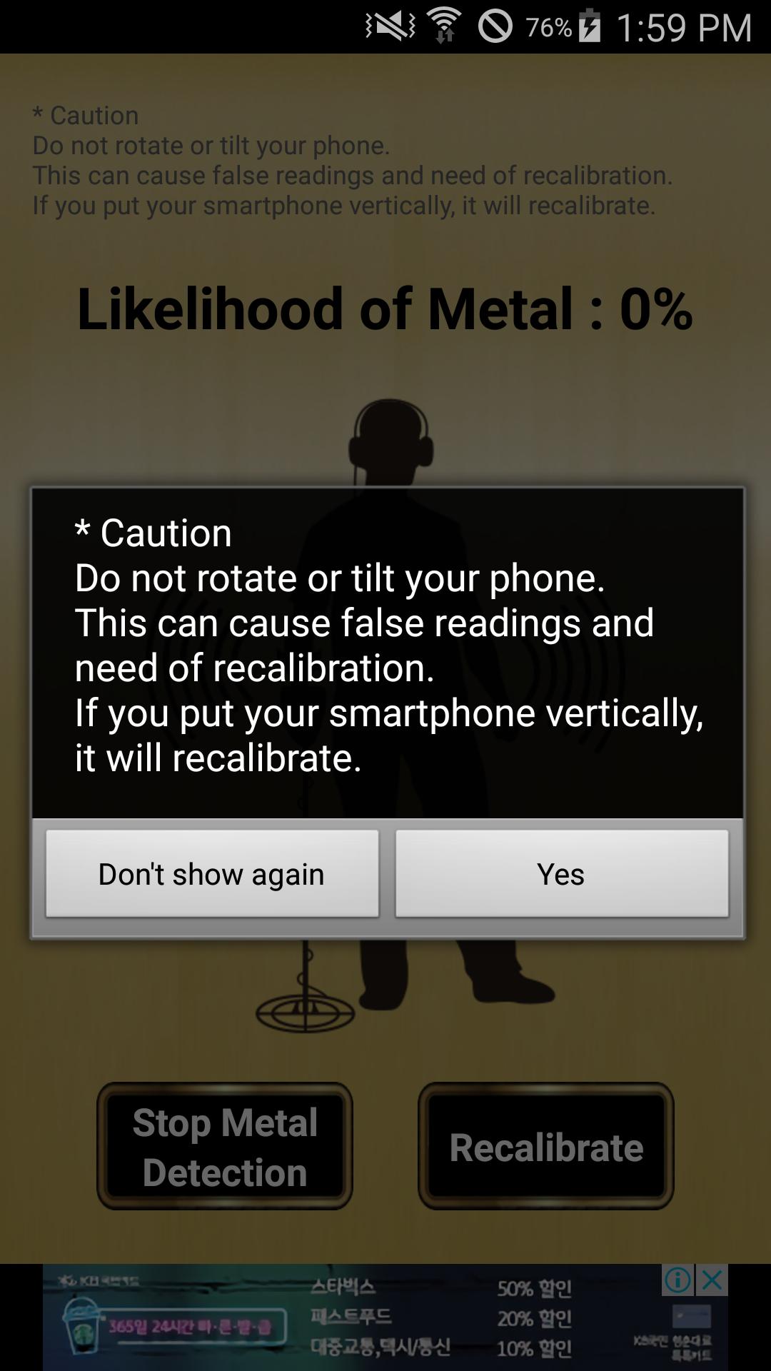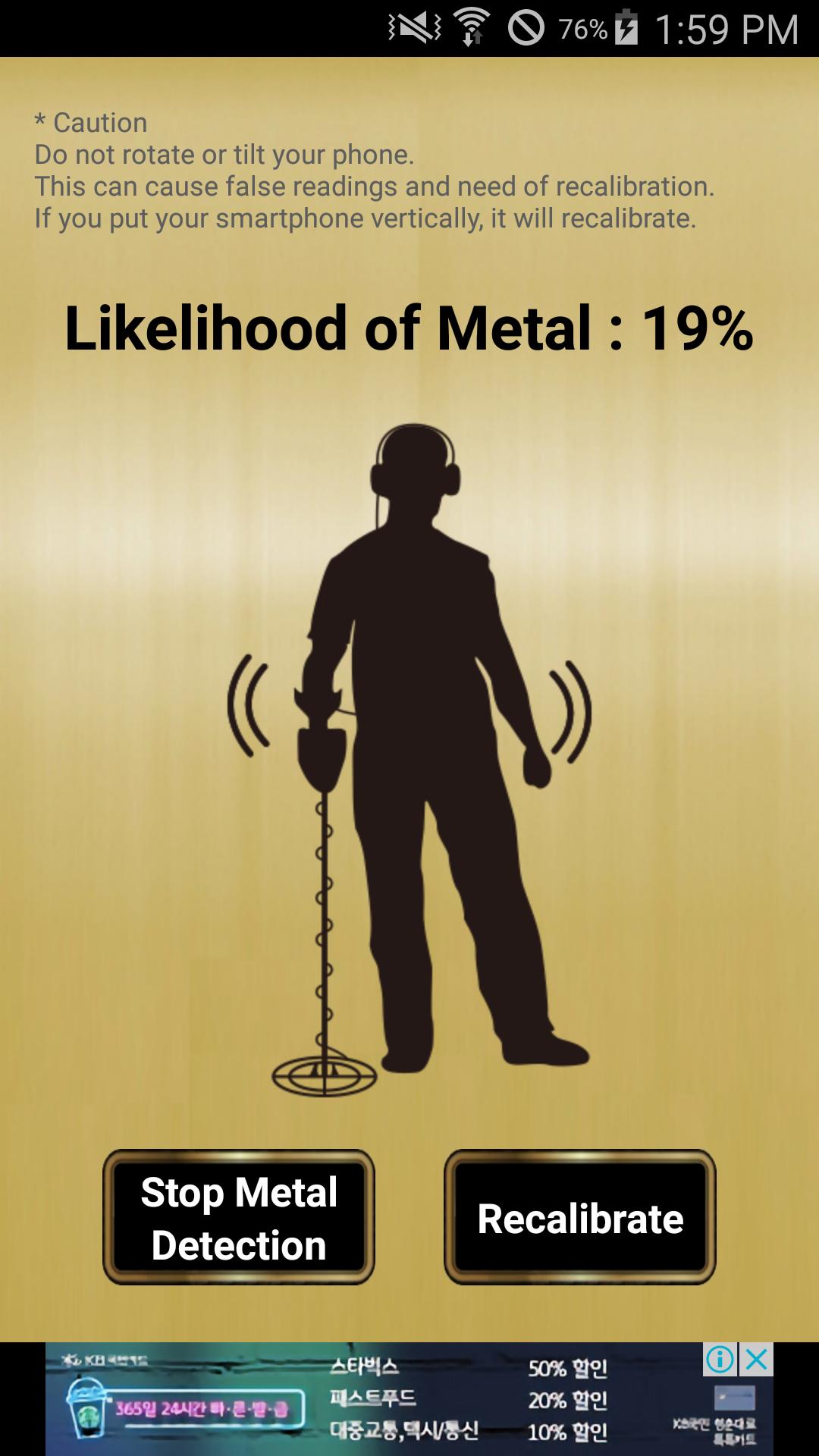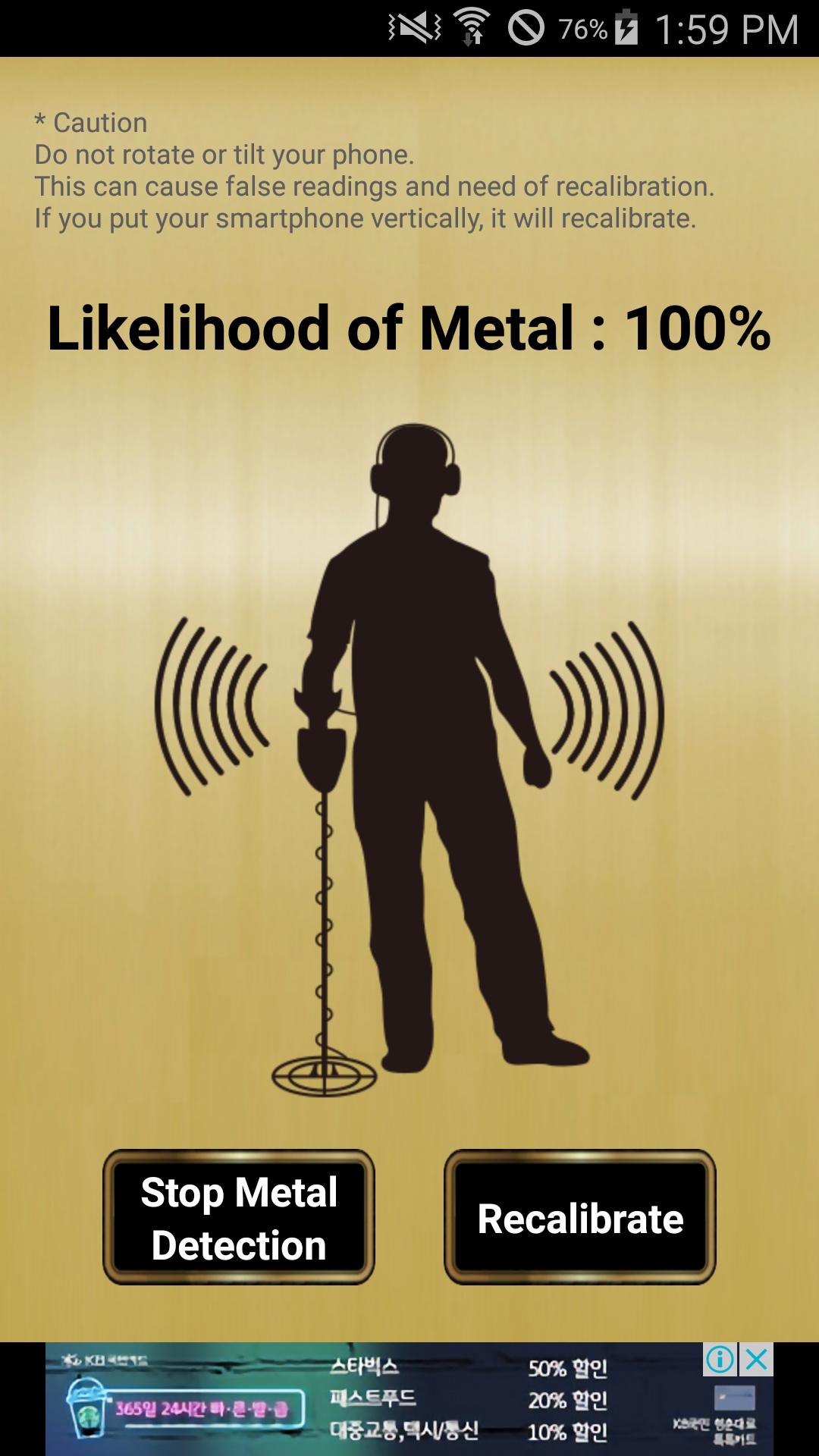 Metal detector application is using magnetic sensor, which is equipped in Smart phone and measures a level of magnetic field to detect a metal object.