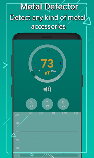 Hand held metal detector app will allow you to detect any metal objects with your phone by measuring tesla. Feel yourself detective and surprise your friends. Hand held metal detector app will allow you to detect any metal because all metal generate magnetic field whose strength can be measured by using real metal detector app with sounds or metal finder. The magnetic field level (EMF) in nature is about 49μT (micro tesla) or 490mG (milli gauss); 1μT = 10mG.