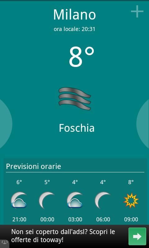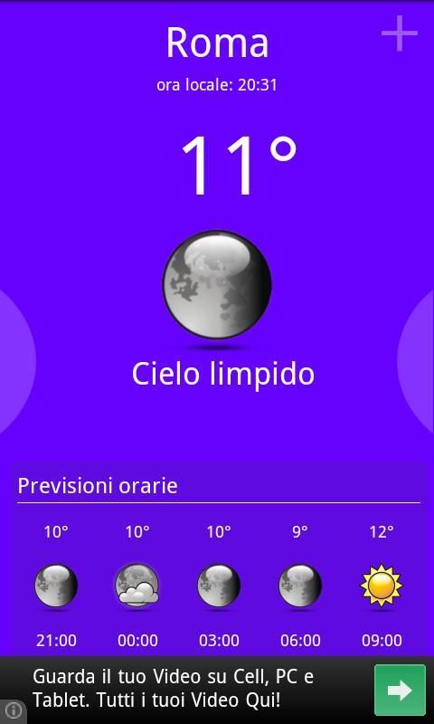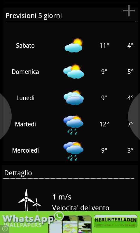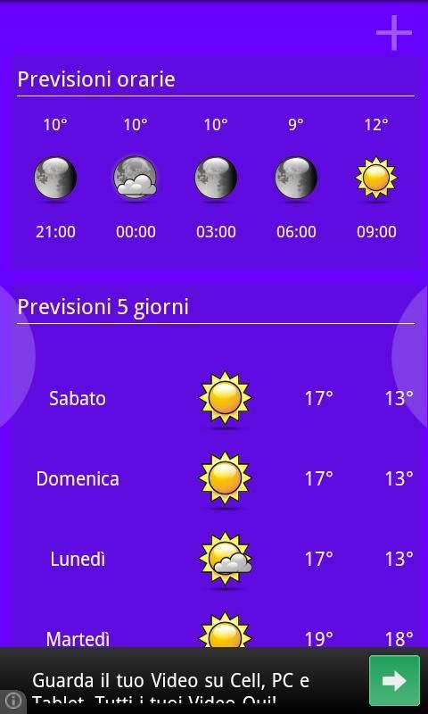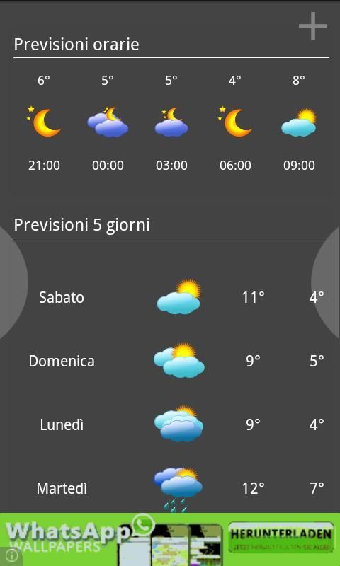 Previsioni orarie (ogni tre ore) e dei prossimi cinque giorni.
