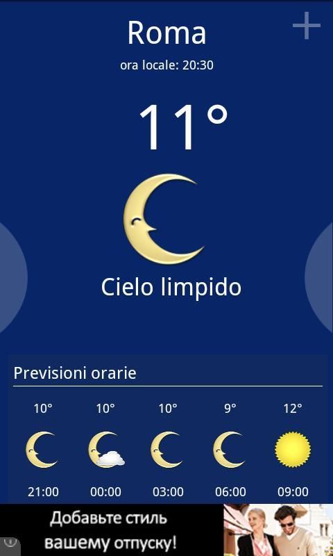 Hourly forecast (every three hours) and the next five days.