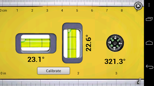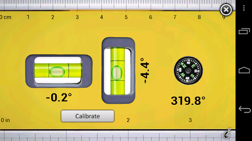 Shows inclination or tilt angle as a spirit level and as a number in degrees. Base angle can be calibrated with a button.