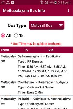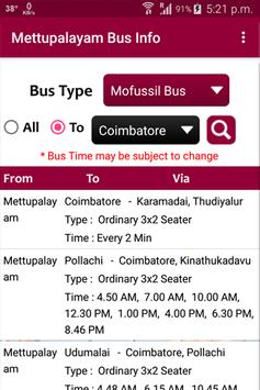 This app provide all information about Mettupalayam Mofussil bus and Town bus.