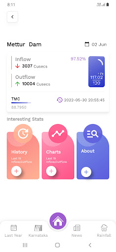 This app gives you the insights of Mettur and Bhavani Sagar dam details. It is updated on a daily basis. You can view the following information