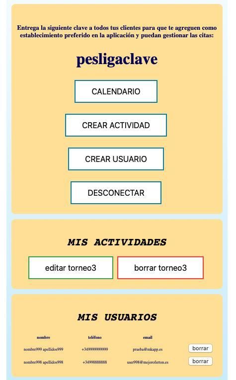 The MiCita application has been designed in a simple and complete way to cover any activity and anyone who wants to access said activity. You will be able to access and manage the data of the users that have been assigned to your activity and only users who have added this by means of a keyword that you will generate when registering your name as a company, business, can register in the activities. group or whatever you are.
