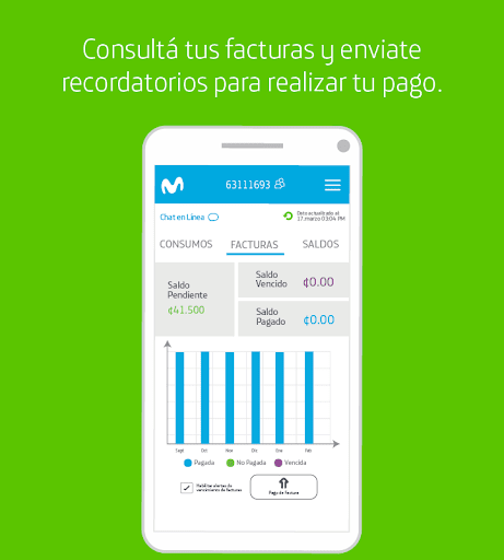 Pagar tus facturas:No hagas largas filas y paga tus facturas desde la app. ¡Mi Movistar Costa Rica es la app para mirar y pagar tu facturación telefónica y mucho más!