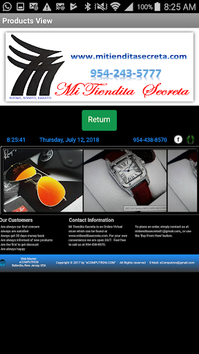 Mi Tiendita Secreta is an online virtual store which can be found at www.mitienditasecreta.com. For your own convenience we are open 24/7. Feel free to call us at 954-348-8570.