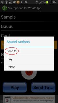 Microphone for WhatsApp is easy to use. Just install the application, press the record button and save your idea. You will always have the recorded sound in your list of favourite sounds, and you will be able to quickly send it to your WhatsApp contact. Laughter is assured!.