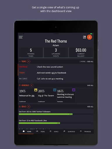 Meet Mike, your new band manager! Mike is a mobile application that will give you the power to take charge of the business aspects of your music career. From goal setting to managing your finances to task and event management, Mike will keep you updated, motivated and in control of your own destiny, leaving you free to create amazing music.