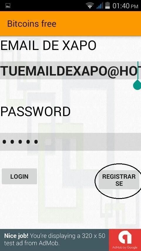 you must place your email for Xapo (verify that the email is correct) and give a password to access any application as this has its own server click on REGISTER and you will get a successful log message