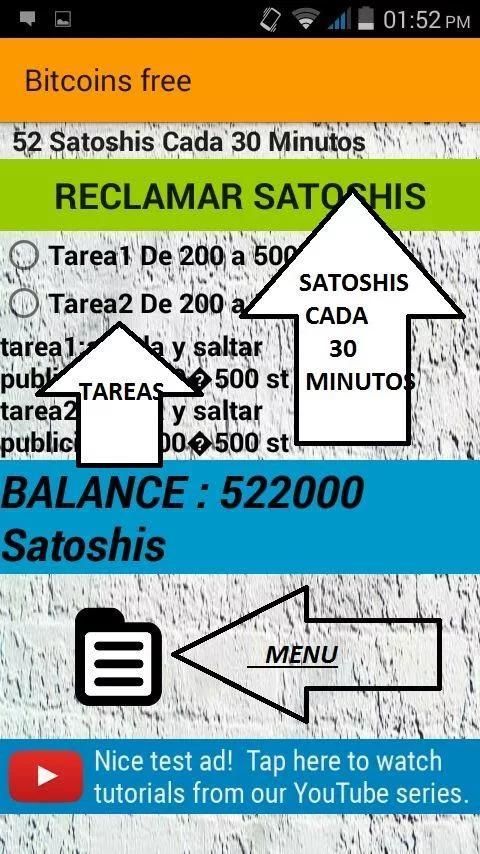 'In the menu you can see several options one is CLAIMING SATOSHIS every 30 minutes can claim your satoshis and you accumulate in the virtual wallet and in the assessment of the application.