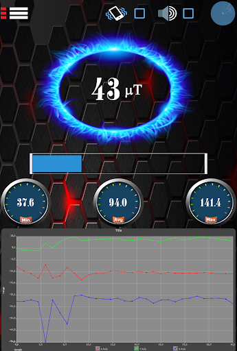 💠 When you move the your phone closer to a computer or television, you will see that the magnetic field heavily increases the values. From this you can determine the magnetic field levels of these devices.