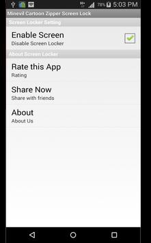 -> Option to Enable/Disable Cute Minevil cartoon Zipper Lock Screen.