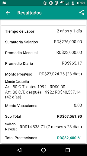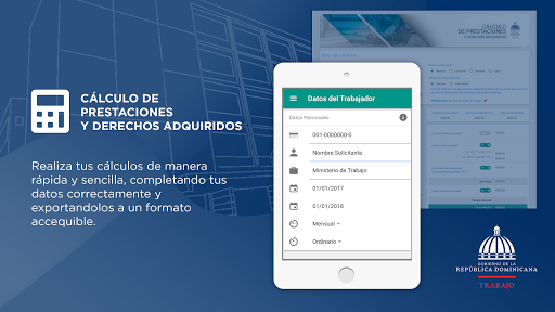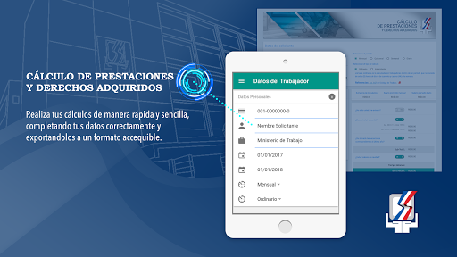 • Aplicación de gestión de servicios, adecuado a las necesidades del sector empleador y trabajador dominicano. El cual contempla el Cálculo de Prestaciones y Derechos Adquiridos de los trabajadores asalariados. • Calendario de días feriados.