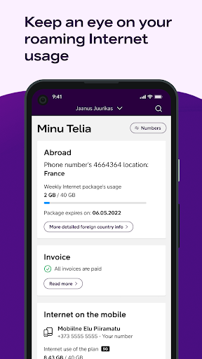 The Minu Telia app is a compact mobile self-service for Telia customers. It offers a convenient way to keep track of your internet usage, running costs and invoices.