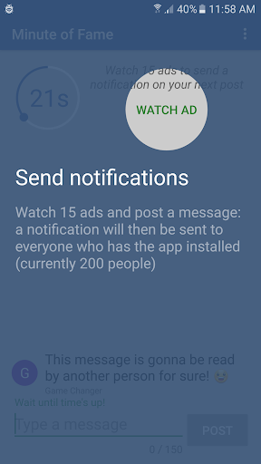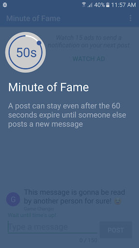 This platform allows you to post a message for the whole world to read for 60 guaranteed seconds - Let your voice be heard! You can even advertise for free.