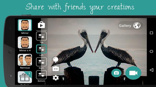Record mirror videos or take mirror photos, it is up to you. The best photo mirror selfie camera, to clone yourself or your friends. Apply lots of video effects to make the mirror videos more attractive.