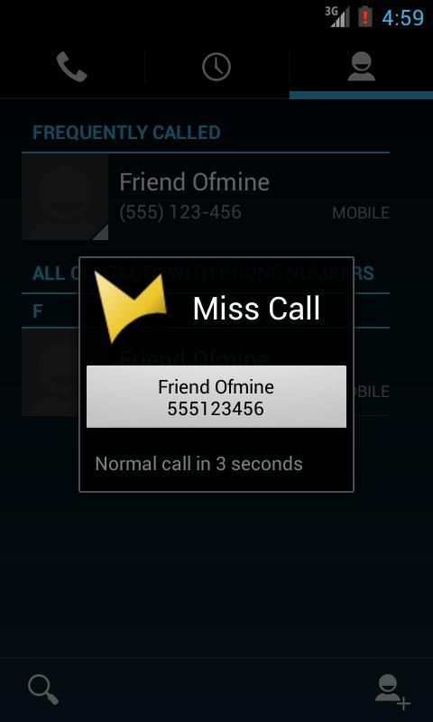 Missed calls! Make a missed call with a single touch.
