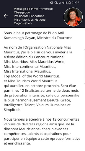 Download Miss Mauritius 2018 mobile app now and keeping touch about every events. You can also vote for a miss.