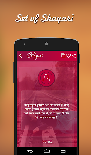 Thanks for using this app so enjoy using latest shayari feel free to comment us for suggest about new features for making world top shayari and we are making simple and best User interactive and simple design for you.