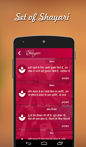 We are make this hindi shayari full features app with simple and best design ever so no way to boring to read and use. This app set of new shayari collection from current trend.