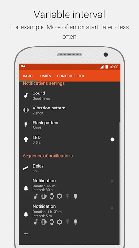 ★ Customizable notification schedule: order of notifications, repeat interval and repeats count.