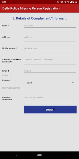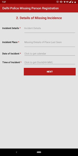 This application facilitates citizens to report an incident of a missing person/children from the jurisdiction of NCT Delhi.