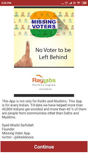 We request every Indian citizen to install the app and help their neighbors and Friends get voter id. For more details visit missingvoters.in
