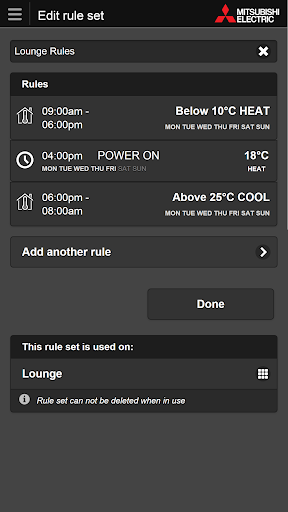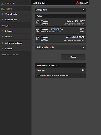 To use the Wi-Fi Control App to control your heat pump a Mitsubishi Electric Wi-Fi Control Interface (MAC-568IF-E / MAC-559IF-E / MAC-558IF-E) is required. The Mitsubishi Electric Control App allows you to monitor and control your heat pump remotely via an internet connection. Designed for superior comfort, this app allows you to control your heat pump from anywhere. Operate your heat pump system remotely and develop advanced operating rules to ensure you will never return to a cold home again.