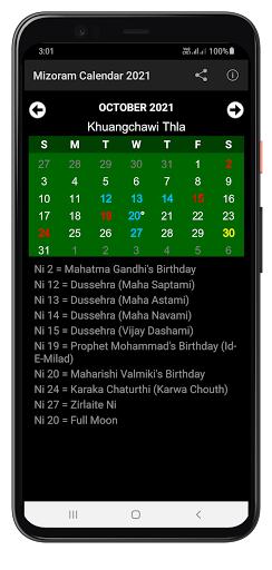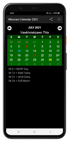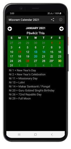 ✦ Red Color - State/National Holidays.