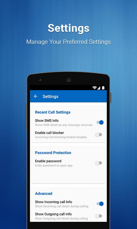 ◆Call Blocker/Call Blacklist- While navigating to any section of app you can use this feature to block any unwanted caller,after selecting you blocked number list you can enable/disable this feature from Settings Section of app,to remove any caller from Blocked Number list you can use "Blocked Number "