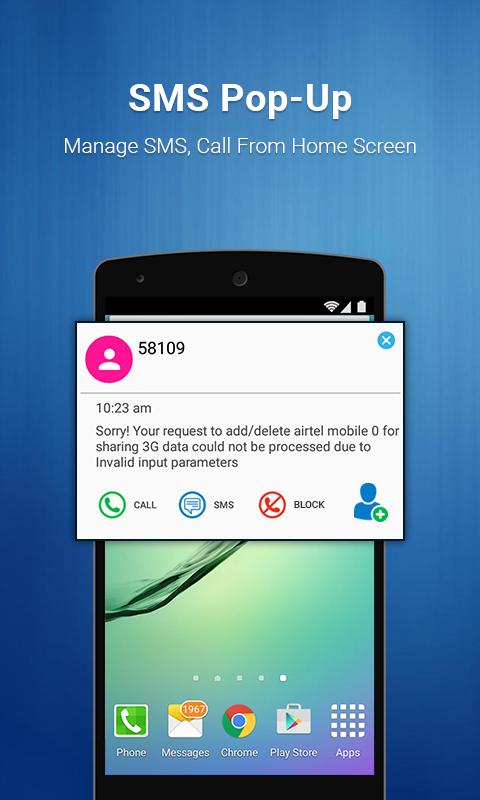 With the SMS Pop-Up feature you can read all your incoming messages while you navigation in any part of your phone & you can directly respond back or Call from there.