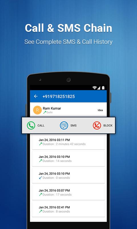 ◆Recent Calls Details- In this section of app you can see all the conversation for any of your recent calls,caller location,all sent & received messages,details of incoming & outgoing calls,you if you wish to black list any caller you can use "Block" feature here.