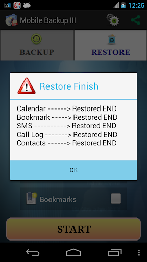 This App easily backup and restore your mobile data (Calendar, Contacts, SMS, Bookmarks and Call Log) in SD card. The backup data is stored in the root directory of SD card or phone storage.