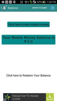 Mobile Money is an App to free recharge your mobile by using Coupons, Deals, App Installs and many more interesting offers. All you need to do is install Mobile Money App which is also free. 'Mobile Money' App offers absolutely free talk time on installing other free Apps, applying to free recharge mobile offers, online registration, coupons,