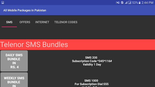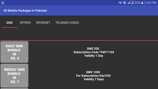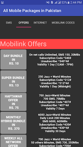 You just have to open the Mobile Packages Pakistan 2017 and select your SIM Network and check for your desire packages with all the detail of activation, deactivation and checking free Minutes, SMS or MB's.