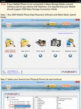Mobile Phone Data Recovery Help is a Free App that guides you to restore your deleted pictures or erased Files Photos Videos Images and other lost data from Cell Phone internal storage or memory Card of your mobile using DDR mobile Data Recovery Software.
