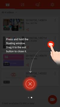 ✓ Control screen recording through floating window or notification bar; hide floating window for frameless video