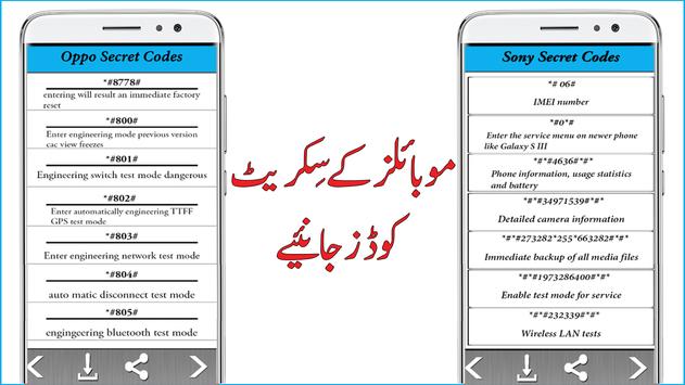 Mobile Secret Codes For all phones have all secret codes of all mobiles,you can make a master of all mobiles after download this application.In this application there are various hidden codes of all mobiles which you not known before it.You can also copy your favorite mobile codes.