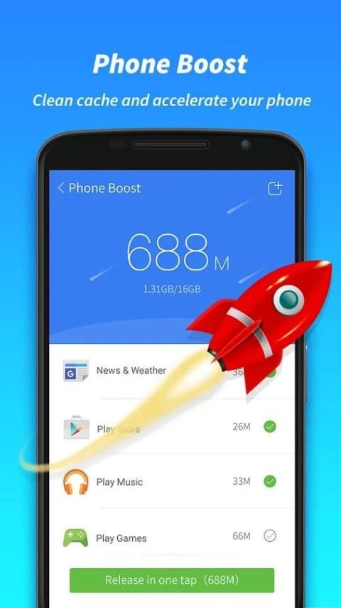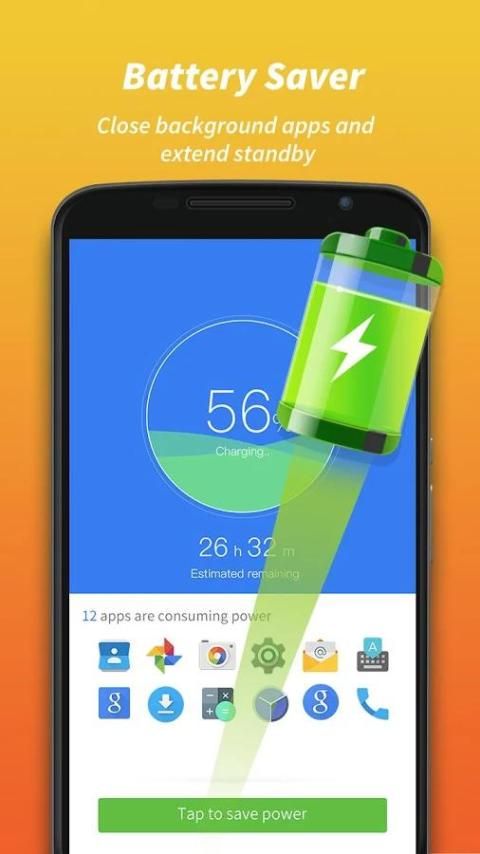 It optimizes running apps in seconds, keeps healthy of phone battery and extends standby. Show the information of app consumption, and remind you to close consumptive apps.