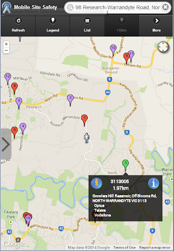 Use Mobile Site Safety to find the mobile base station nearest to you.