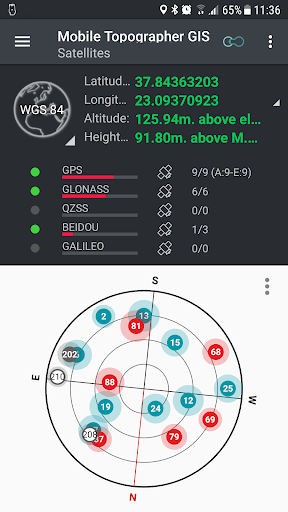 - Show GNSS satellites with signal info in both compass view or AR.