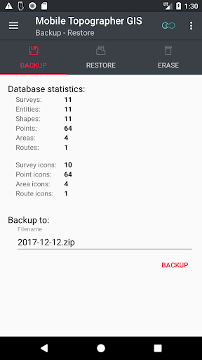 - Backup and restore your data using an SQL .db file.